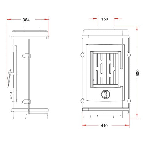 Die technischen Spezifikationen des Kaminofen Wamsler Rocky 7 kW sind bemerkenswert und tragen maßgeblich zu seiner hervorragenden Performance bei. Der Abgasanschluss oben mit einem Durchmesser von Ø 150 mm gewährleistet eine effiziente und sichere Abfuhr der Abgase. Mit seinen Maßen von 800x410x364 mm bietet dieser Kaminofen eine kompakte, dennoch raumfüllende Präsenz, die perfekt in moderne Wohnräume passt. Trotz seiner Robustheit und Solidität bringt er nur 72 kg auf die Waage, was eine einfache Handhabung und Installation ermöglicht.