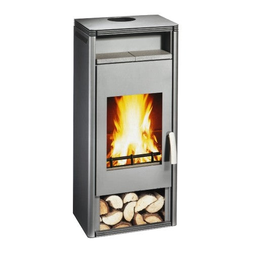 Nie wieder das ständige Hin und Her mit dem Brennholz. Direkt unter der Ofentür verbirgt sich ein integriertes Holzfach, das Platz für Scheitholz bietet. So haben Sie stets einen kleinen Vorrat Brennmaterial griffbereit, praktisch gelagert und optimal nachgetrocknet.